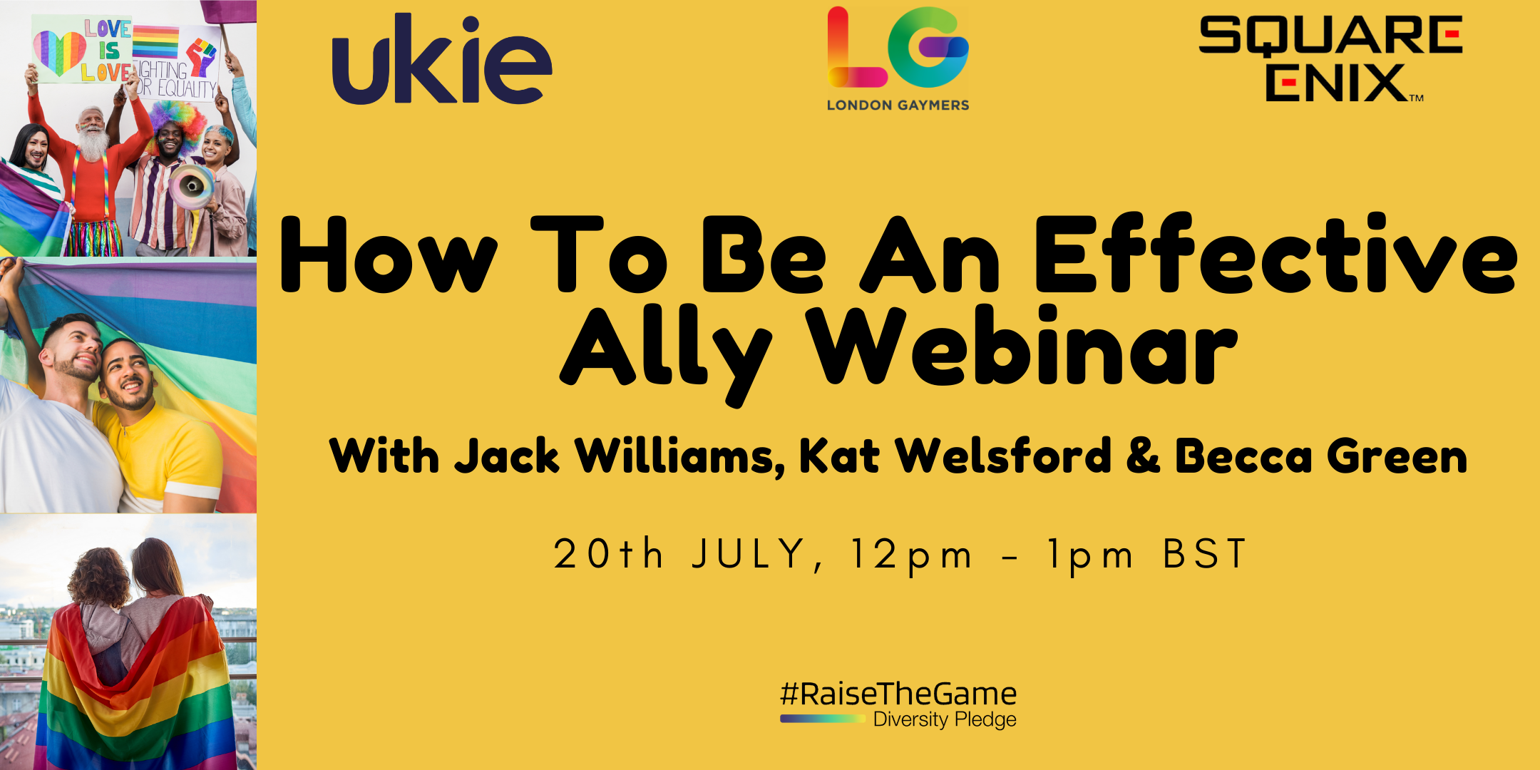 Similar in nature to The 'Bring Yourself To Work' #RaiseTheGame 1 Year Anniversary Webinar we did in February 2021, we have partnered up with fellow pledge supporter London Gaymers and pledge partner Square Enix Europe to deliver a motivational 60-minute, interactive webinar to reflect on the active part we can play in being allies to underrepresented communities (E.g. LGBT+), how we can be effective in allyship and make a positive impact; thus help in creating more inclusive workplaces and genuine representation in video games.
